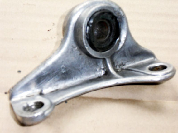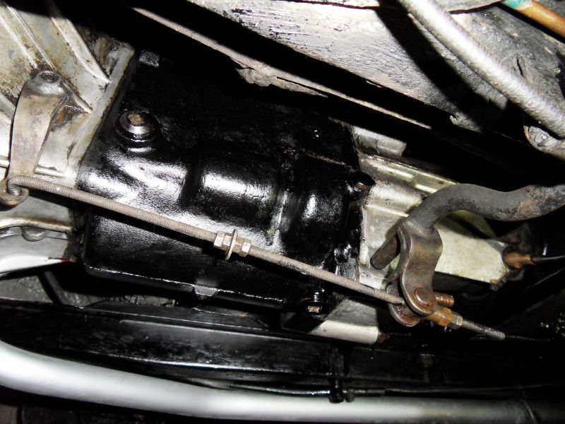 Le silent bloc est changé pour cette pièce qui maintient la tige d'embrayage . Un coup de peinture Restom noire sur la boite de vitesse .