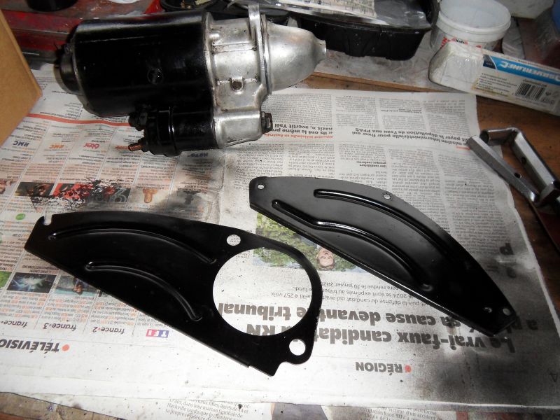 J'ai repeins les caches tôle de carter en noir la petitte visse du haut plaque côté démarreur il ne faut pas la dévisser entièrement , pour la remettre impossible sans démonter le tuyau d'huile sur culasse .