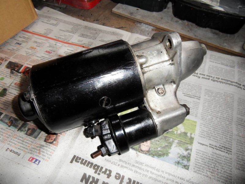 Je décide de controler les charbons du démarreur Ducelier à sélenoïde que j'avais installer en 1985 à la place du démarreur à tirette moins sécure car on pouvait démarrer la Peugeot sans clé . Avec le nouveau démarreur sélénoïde j'ai rajouté un contacteur à clé sur le tableau de bord.