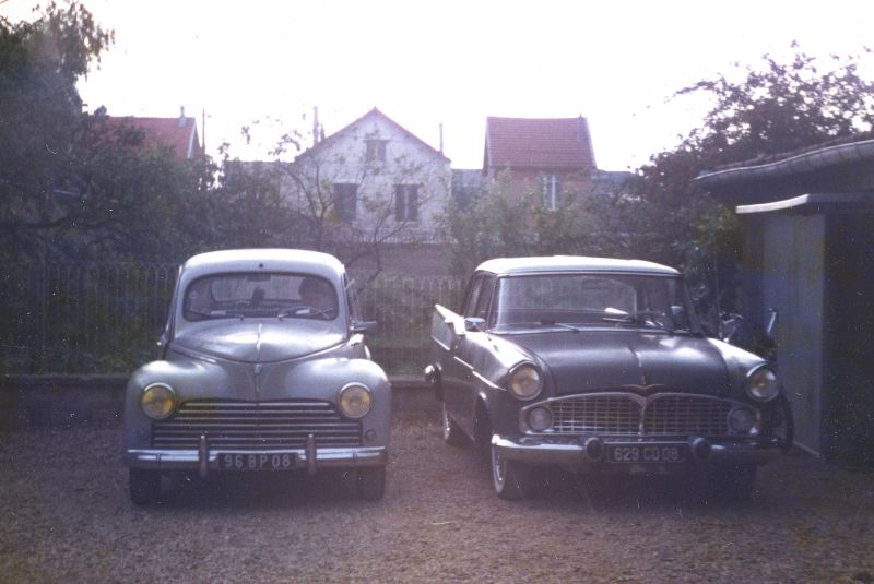 Simca Beaulieu de 1956 mais oui ! une Baulieu moteur V8 de 13cv 160 kms à l’heure , 15 litres au cent , achetée 4000 frs à Nouzonville . La caisse impecable peu de rouille , mais le moteur est un peu fatigué . Il tourne parfois sur 6 cylindres ! malheureusement il la revend à regrets car à cette époque nous ne travaillons pas encore à temps plein !
