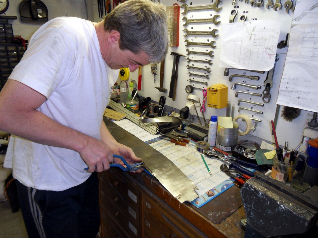Il a fallut adapter ces plaques au galbe des longerons , pour celà nous avons fait des tracages et la découpe et plusieurs éssais de positionnement afin qu’elles s’adaptent parfaitement sur les longerons