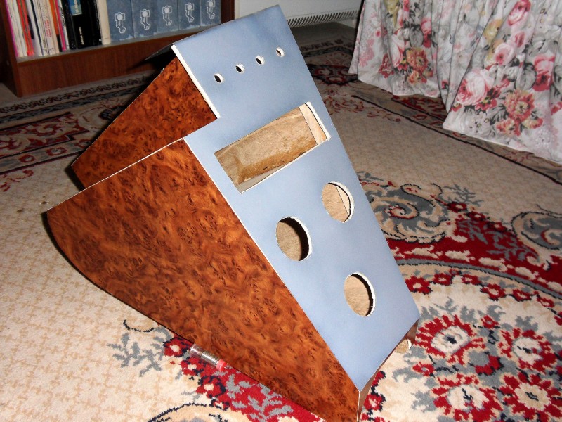 Une plaque alu est découpée et fixée sur la face de la console , ensuite j’ai percé les trous pour installer le compteur d’eau , compteur charge batterie , le compteur horloge .