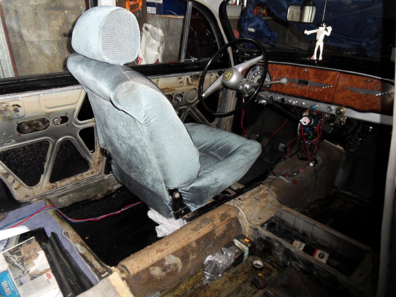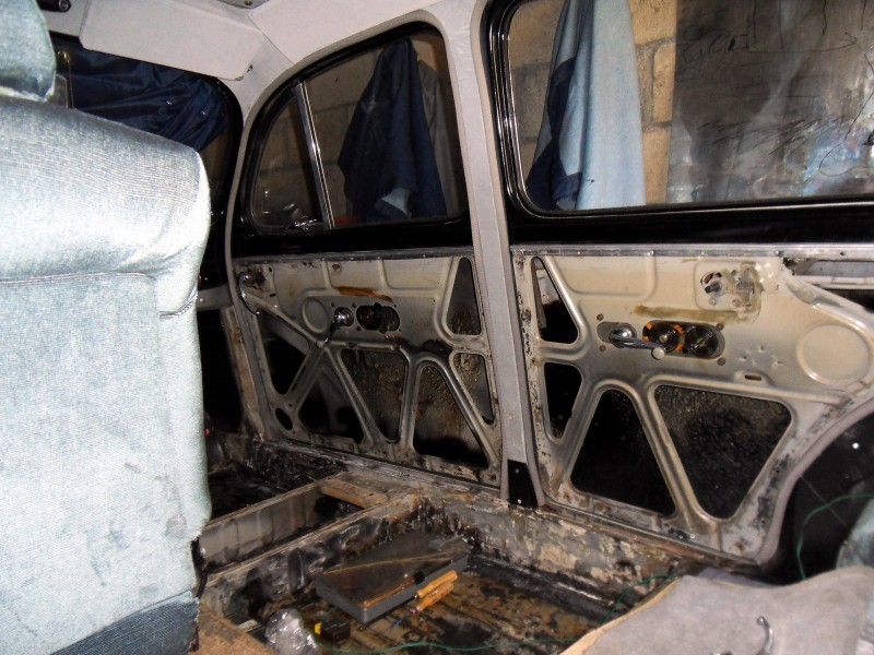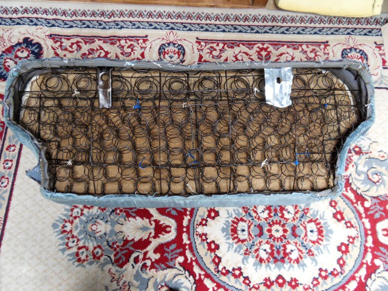 L’intérieur étant entiérement démonté pour finir les soudures , et pourquoi ne pas refaire le capitonnage ? il avait été réalisé en 1985 (27 ans) il était usé par endroit et je n’avais plus de velours en stock imposssible de retrouver le même en magasin .