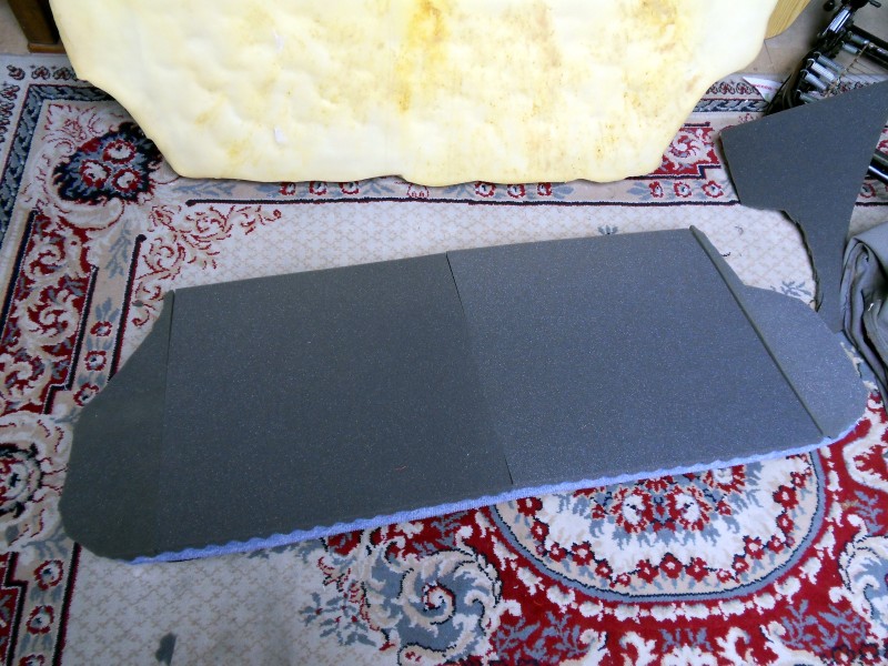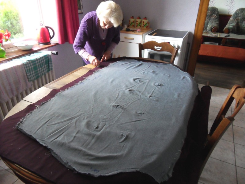 Le velour bleu sert de patron mais il faut compter 2cm plus large pour la découpe