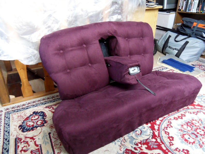 La banquette du haut nécessite le même travail que la banquette du bas mais avec plus de minutie car il y a le repose bras sur le modèle de 1957 .