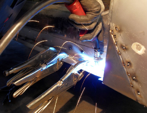 le morceau de tole manquant est refabiqué par mon frère et il est soudé sur l’aile . Il ne reste plus qu’à meuler, à mastiquer un peu , et à repeindre f: prochain sujet , soudure de la tôle du plancher de 1,70 x 15 cm de large .