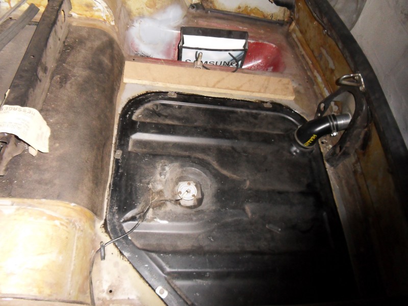 Septembre 2012 : remise en place du réservoir éssence qui a été peint à l’époxy noir . L’échappement lui aussi est réinstallé .