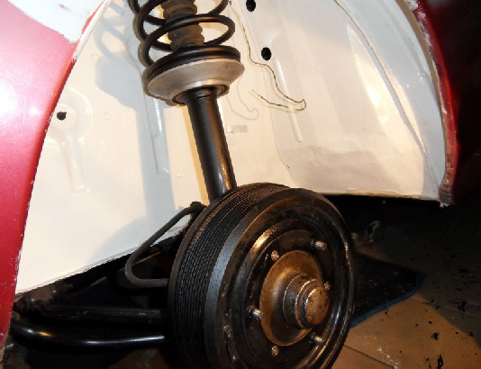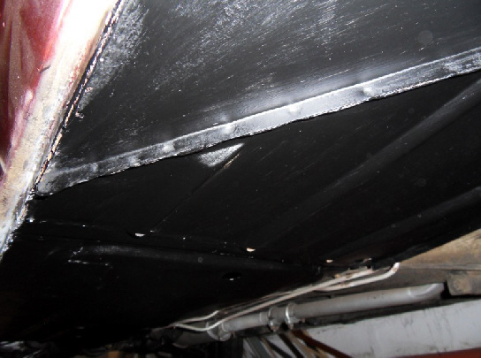 Le dessous côté gauche est repeint avec la peinture époxy noire . La jupe arrière est refaite et apprétée.