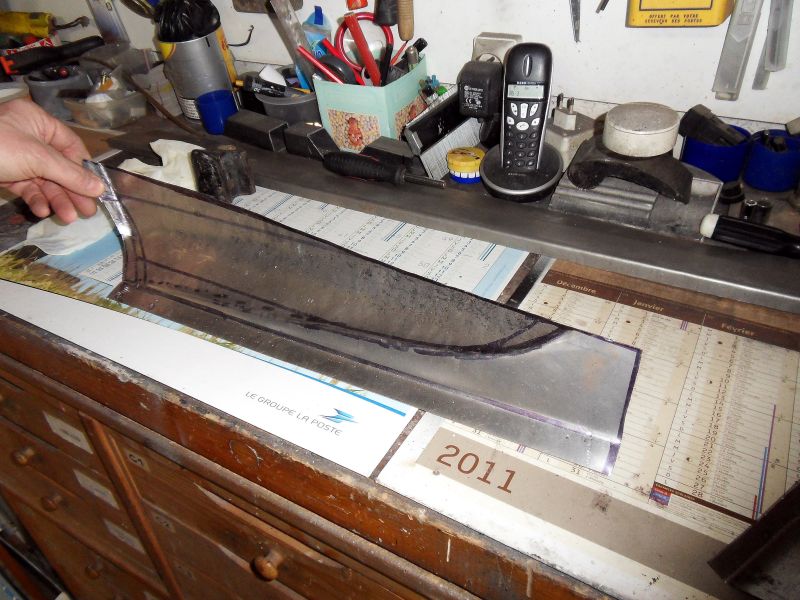 Mai 2013 Deux piéces sont refabriquées et seront soudées pour réparer l’intérieur de l’aile avant droite ..