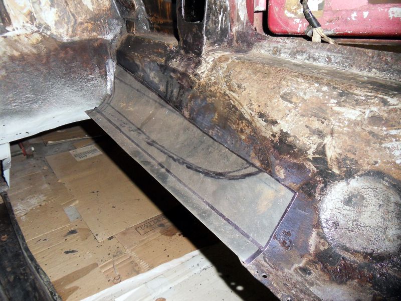 Il a fabriqué une autre tôle de 1mn qui sera soudée sur le longeron intérieur , on peux voir sur la photo que le plancher vient d’être découpé .