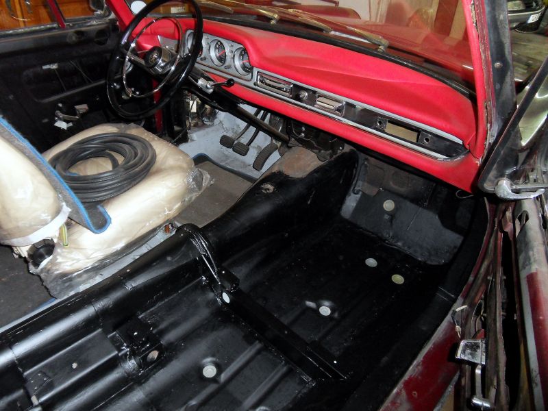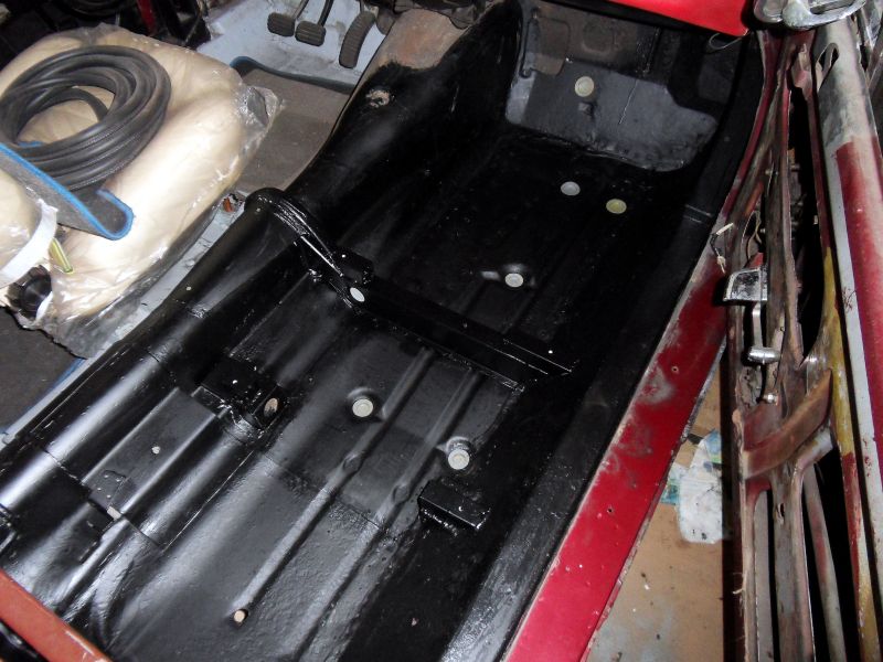 Le plancher étant refait à neuf il reste à repeindre le plancher conducteur en noir satin , sur l’aile arrière il y a un creux à réparer .
