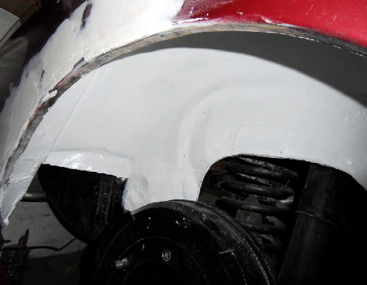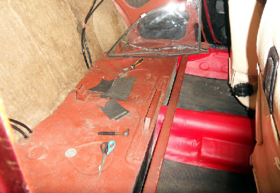 C’est parti pour le remontage intérieur , un skai rouge est collé sur le tunnel du pont et sur les cotés l’isolation est faite , ensuite la banquette est mise en place ainsi que les panneaux de coté .