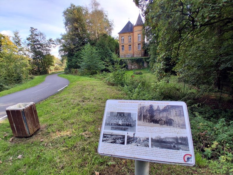 Le Château de Flize sur notre droite , nous allons rejoindre le deuxiéme pont plus moderne