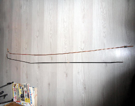 le maitre cylindre retiré , j’en ai profiter pour démonter le tuyau central de frein en fer , le modele m’a servi pour le faire refaire chez les Ets Dumont . Les deux tuyaux à l’avant avaient été changés en 1999 .