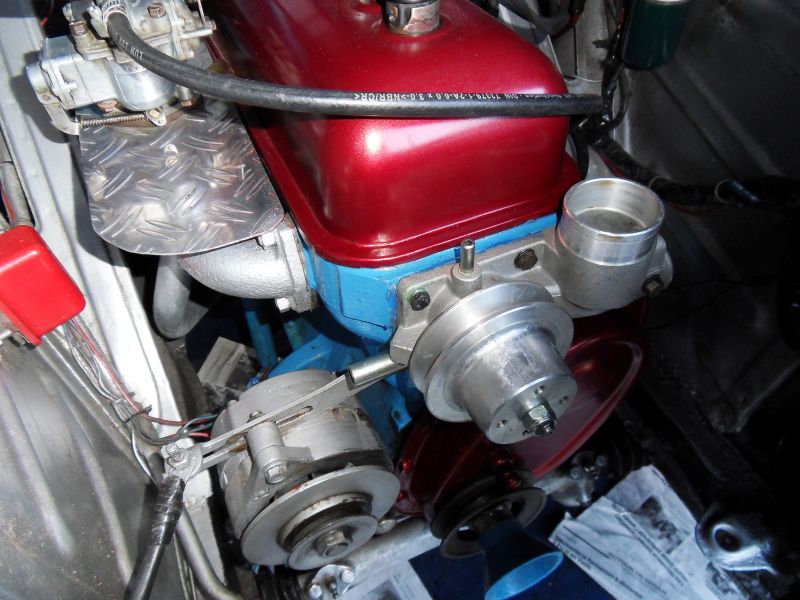 Il faut un voltmètre rond à la place de l’amperèmetre du compteur , il sera installé soit sur une console soit en dessous du tableau de bord . Il faut fixer l’alternateur avec une vis : avec entretoise et écrou : et pour le bas une vis : avec écrou de 17 . Pour le branchement électrique c’est ici