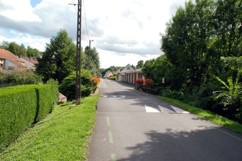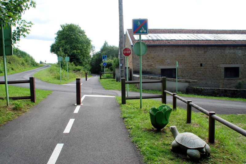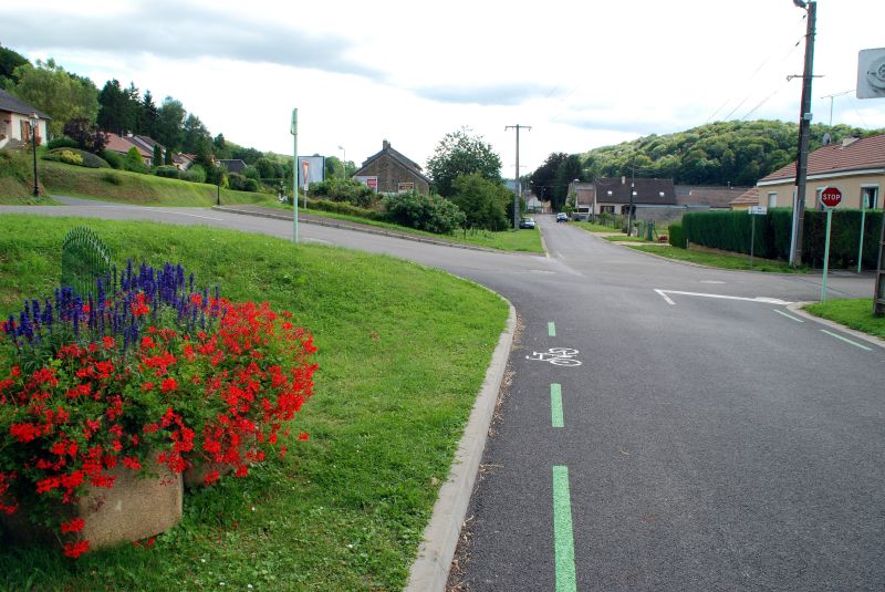 L’entrée de Haraucourt , il faut toujours suivre les marquages verts au sol