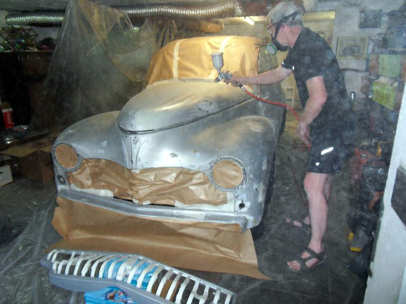 La 203 est dégraissée avec un produit spécial dégraissage . C'est parti pour la pulvérisation de l'apprêt couleur grise en un litre .