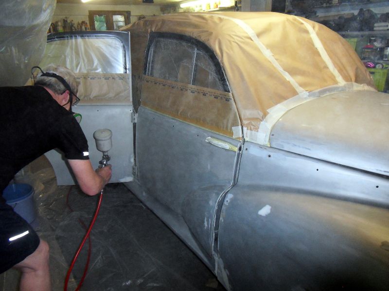 Trois couches d'apprêt déposées , et nous pulvérisons aussi l'intérieur des portes