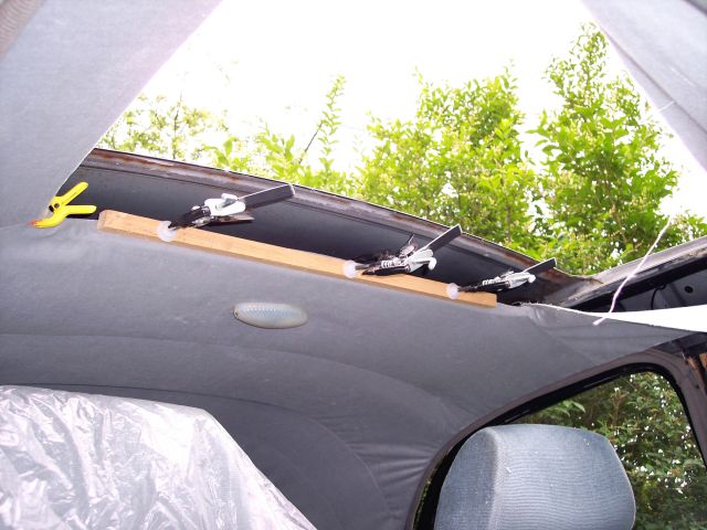 A partir de cet instant il faut coller le velours avec un tube de néoprenele toit ouvrant aurait géné si il était remonté avant .
