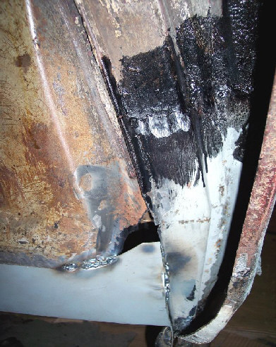 Les passages de roues sont soudés au mig par bouchonage sur les pointages d’origine