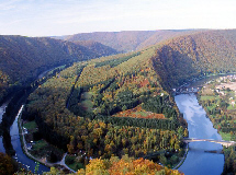 nous appelions la lumière de Meuse . En l’an 1080 , les trois fils du seigneur d’Hierges n’auraient pas dû prendre ombrage de la légèreté de leurs épouses Hodierne, Berthe et Ige . Ils partirent si longtemps en croisade avec Godefroy de Bouillon que les trois dames ne purent résister aux charmes de trois braconniers d’Ardenne déguisés en damoiseaux . Le jour où Jérusalem tomba dans les mains pieuses , Dieu changea en pierre Hodienne la blonde , Berthe la brune et Ige la rousse pour s’être laissées prendre comme trois grives aux lacs . Le fleuve porte le deuil de ces amours brisés.