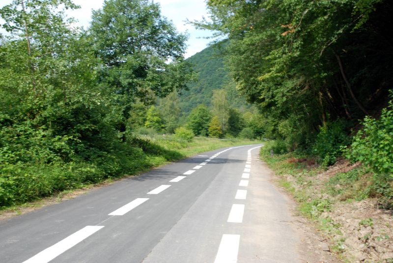 Nous nous dirigeons vers Chooz sur une route ou les voitures et vélos peuvent l'emprunter.
