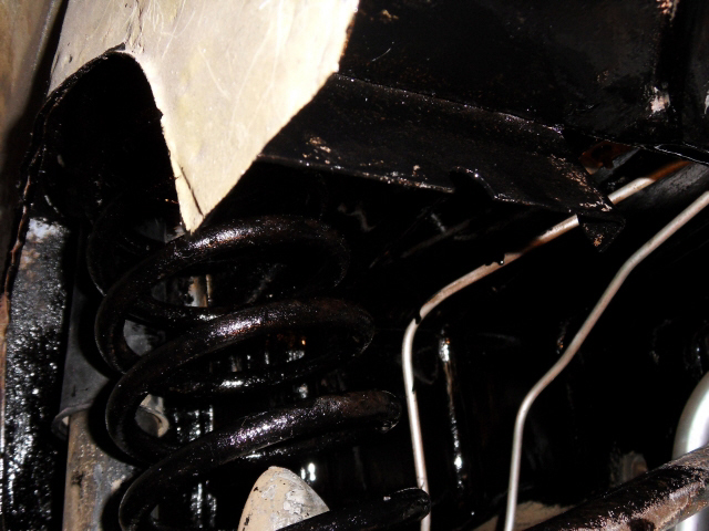 Le dessous arrière est dégoudronné , ensuite l’antirouille et la peinture restom noir époxy est appliquée