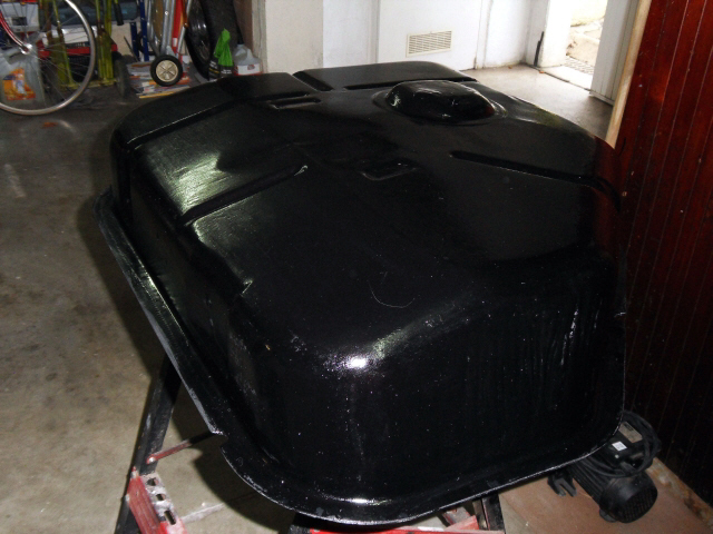 Néttoyage et vérification de la pompe à injection , un ressort était grippé , le réservoir d’éssence est repeint avec une peinture epoxy noir ref EAF 2092 de chez Restom .