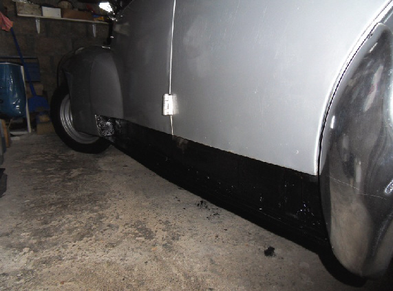Novembre 2011 : Les soudures sont terminées .Pour le longeron gauche , j’applique deux couches de Rustol antirouille , il faut attendre le séchage quelques jours , puis une couche de peinture noire Restom Epoxy EAF 2092