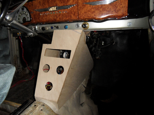 Le poste de radio est changé par un autre de 1957 en 2025 . Quatre interupteurs chromés seront incorporés sur la console au dessus du poste radio , un interupteur sera utilisé pour le ventilo électrique du radiateur , un pour le chaufage , un pour le feux de recul ,