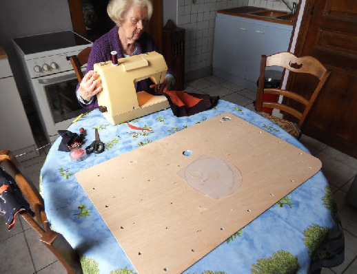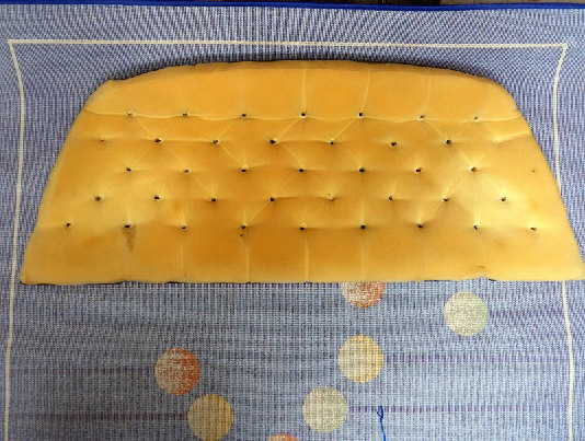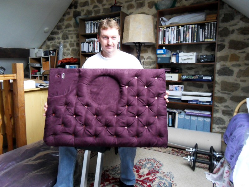La porte avant droite est terminée en 4heures de travail avec 28 boutons de la même couleur que le tissus
