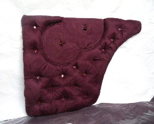 L’ancien velours du siége passager se compose de 9 piéces à découper sur le nouveau tissus et de 12 boutons de diamètre 22 mn mis sous presse avec une chute de tissus bordeaux .