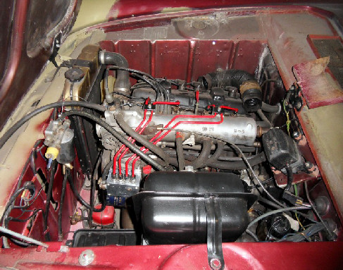 Des durites ont été remplacées , la pompe à injection mise en place les tuyaux repeints en rouge , vidange de l’huile , du liquide de refroidissement le filtre à essence et filtre à air changés . Bientôt le moteur va redemarrer après 7 années à l’arrêt .