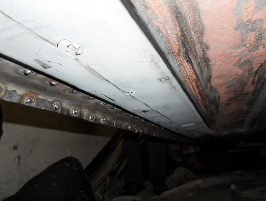 Juin 2013 ,sur la photo, le dessous de la 404 où les soudures sont terminées ,en finition il reste à meuler les soudures et à repeindre en noir Epoxy .